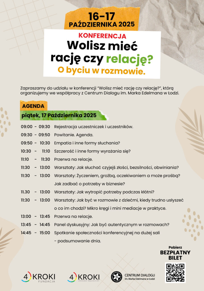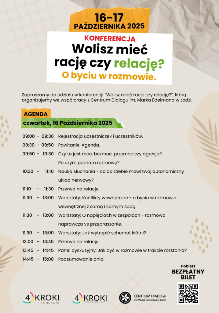 Konferencja „Wolisz mieć rację czy relację? ” 16 – 17.10.2025